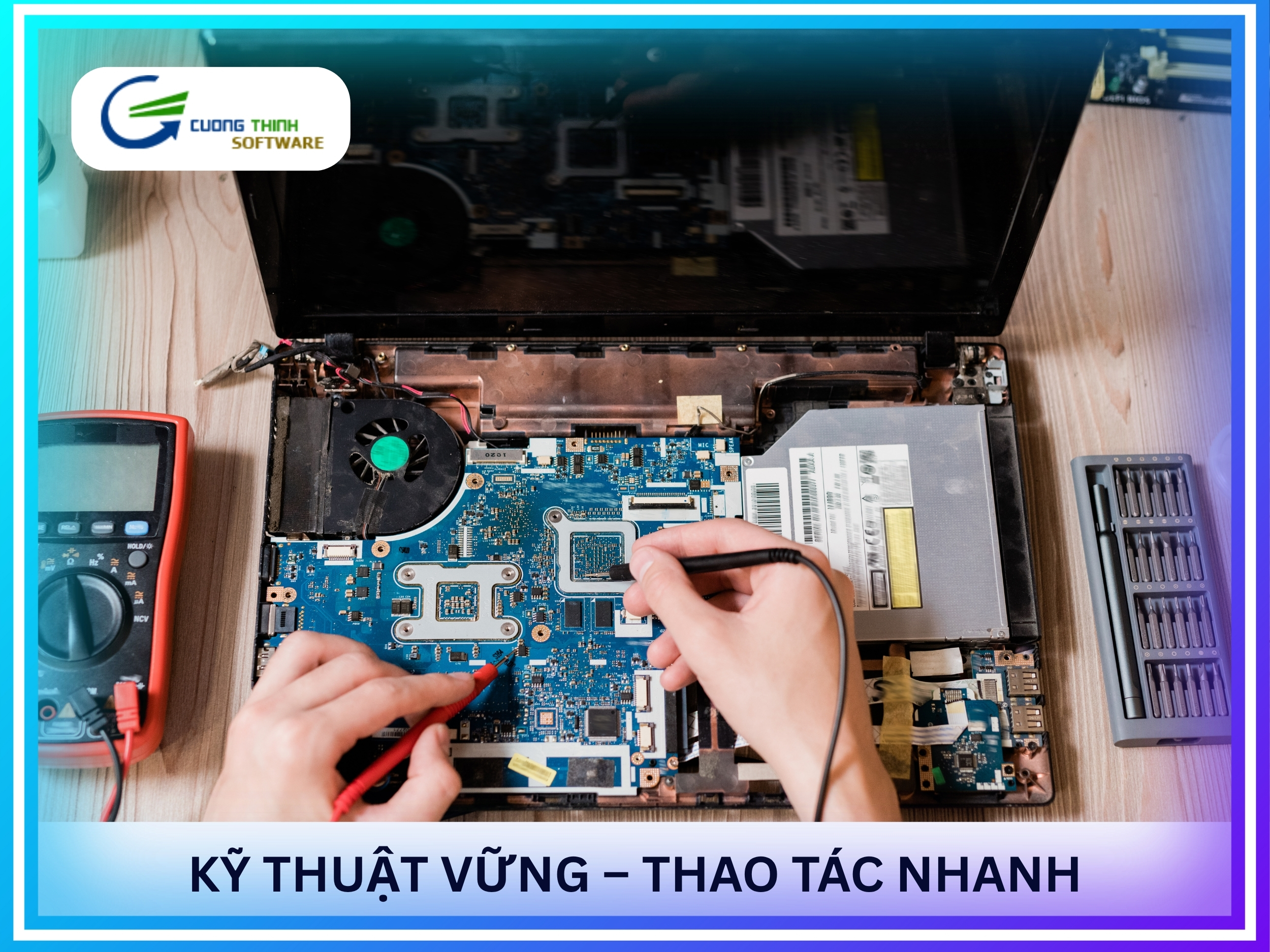 Dù là phục vụ tận nơi, nhưng chất lượng dịch vụ vẫn được đảm bảo đầy đủ như tại cửa hàng. Đội ngũ kỹ thuật viên của Cường Thịnh đều được đào tạo bài bản, có kinh nghiệm xử lý đa dạng các dòng laptop – PC và mang theo thiết bị chuyên dụng để đảm bảo hiệu quả tối ưu.