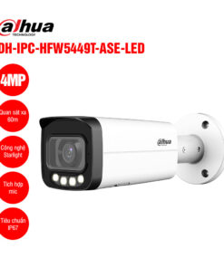 Một trong những điểm nổi bật của DH-IPC-HFW5449T-ASE-LED là khả năng chiếu sáng với LED trắng sáng, cho phép camera ghi lại hình ảnh sắc nét trong điều kiện thiếu sáng. Tầm quan sát hồng ngoại của camera có thể lên đến 50m, giúp người dùng dễ dàng theo dõi khu vực xung quanh dù là ban đêm. Công nghệ LED trắng sáng còn giúp nâng cao chất lượng hình ảnh, tránh hiện tượng nhiễu hoặc mờ khi quan sát trong bóng tối.