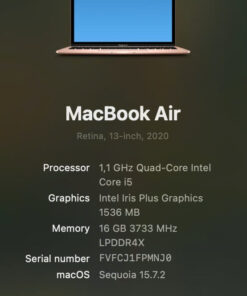 Dung lượng RAM 16GB là điểm cộng lớn, giúp máy chạy đa nhiệm cực tốt. Đây cũng là lý do MacBook Air 2020 bản RAM cao được nhiều người ưu tiên – bởi khả năng đáp ứng dài hạn, kể cả khi nhu cầu tăng lên.