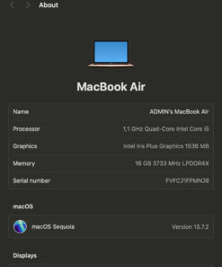 Máy đang chạy macOS Sequoia 15.7.2, hệ điều hành tối ưu năng lượng, nhiều tính năng thông minh và bảo mật cao.